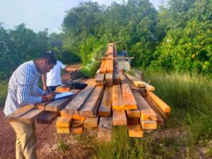 (កំពង់ស្ពឺ)៖ នគរបាលប្រឆាំងបទល្មើសសេដ្ឋកិច្ចខេត្តកំពង់ស្ពឺ បានស្រាវជ្រាវឃាត់រថយន្តដឹកឈើ១គ្រឿង ដោយដកហូតឈេីខ្នាប ចំនួន៤០ដេីម។