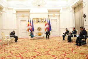 នៅវិមានសន្តិភាព នាព្រឹកថ្ងៃទី២៣ ខែមិថុនា ឆ្នាំ២០២២ នេះ សម្ដេចអគ្គមហាសេនាបតីតេជោ ហ៊ុន សែន នាយករដ្ឋមន្ត្រី នៃព្រះរាជាណាចក្រកម្ពុជា បានទទួលជួបពិភាក្សាការងារជាមួយនឹងលោកជំទាវ អាយដា អ៊ុនលូ (Ayda Unlu) ឯកអគ្គរដ្ឋទូតតួគី ប្រចាំនៅកម្ពុជា ខណៈដែលលោកជំទាវ បានចប់បេសកកម្មការទូតនៅព្រះរាជាណាចក្រកម្ពុជា។
