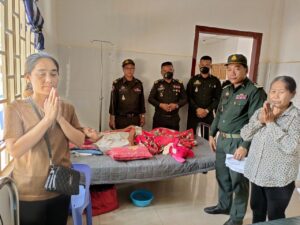 ខេត្តព្រះវិហារ ៖ លោកវរសេនីយ៍ឯក ជា ឈុន មេបញ្ជាការរង នាយសេនាធិការ តំណាងឧត្ដមសេនីយត្រី ច័ន្ទ សុខុន មេបញ្ជាការ កងពលតូចអន្តរាគមន៍លេខ៨ បាននាំយកថវិកាមិត្តជួយមិត្ត រួមនឹងថវិកាសប្បុរសធម៌ ប្រគល់ជូនដល់ដៃក្រុមគ្រួសារលោកវរសេនីយ៍ឯក ជួប ណៃ មេបញ្ជាការរង វរសេនាតូចអន្តរាគមន៍លេខ៣៨៥ ចំណុះកងពលតូចអន្តរាគមន៍លេខ៨។ ខណៈពេលកំពុងដេកសម្រាកព្យាបាលជំងឺ នៅមន្ទីរពេទ្យយោធភូមិភាគទី៤ ខេត្តសៀមរាប ។