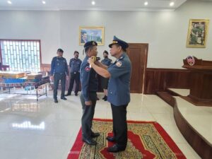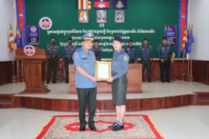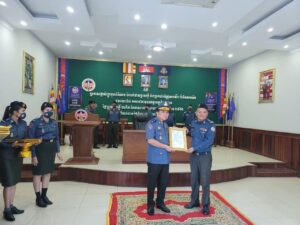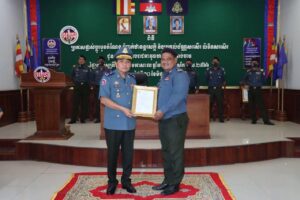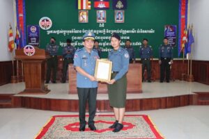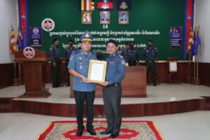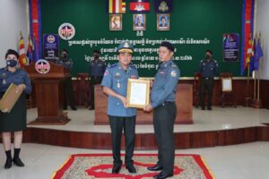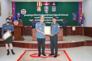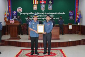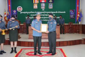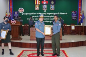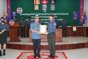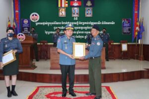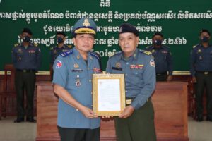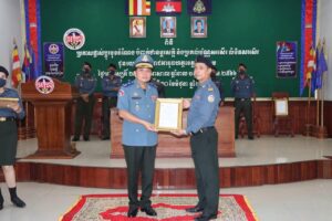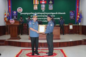ខេត្តកំពង់ចាម ៖ នៅបញ្ជាការដ្ឋានកងរាជអាវុធហត្ថខេត្តកំពង់ចាម លោក ឧត្តមសេនីយ៍ សោ សាវឿន មេបញ្ជការកងរាជអាវុធហត្ថខេត្តកំពង់ចាម បានអញ្ជើញជាអធិបតីក្នុងពិធីប្រកាសផ្លាស់ប្ដូរមុខតំណែង បំពាក់ឋានន្តរសក្តិ និងប្រគល់ប័ណ្ណសរសើរ លិខិតសរសើរ ជូនយោធិននៃកងរាជអាវុធហត្ថខេត្តកំពង់ចាម ។