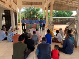 កំពង់ចាម ៖ នៅថ្ងៃទី២៣ ខែកក្កដា ឆ្នាំ២០២២ លោក ហេង វុទ្ធី ប្រធានក្រុមការងារចុះជួយឃុំអារក្សត្នោត , លោកអនុប្រធានការងារ និងសហការី បានចុះដល់មូលដ្ឋានភូមិគីឡូ៧ ឃុំអារក្សត្នោត ស្រុកស្ទឹងត្រង់ ខេត្តកំពង់ចាម ដើម្បីជួបសំណេះសំណាល និងនាំយកនូវគ្រឿង ឧបភោគបរិភោគ ជូនសមាជិកបក្ស ក្នុងភូមិគីឡូ៧ ឃុំអារក្សត្នោត រួមមាន៖ទឹកក្រូចចំនួន៤៥កេះ កាហ្វេចំនួន៥០កញ្ចប់តូច តែចំនួន០៣កញ្ចប់ធំ អង្ករ០២បេ (១០០គីឡូក្រាម)សរុបចំណាយអស់ថវិការចំនួន១,៥៦០,០០០រៀល ។