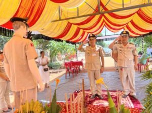 ខេត្តកំពង់ចាម ៖ នៅរសៀលថ្ងៃទី៣០ ខែកក្កដា ឆ្នាំ២០២២ លោកឧត្តមសេនីយ៍ត្រី ហេង វុទ្ធី ស្នងការរងផែនការងារនគរបាលព្រហ្មទណ្ឌ តំណាងលោកឧត្តមសេនីយ៍ទោ ឯម កុសល ស្នងការនគរបាលខេត្តកំពង់ចាម បានដឹកនាំកម្លាំងនគរបាលការិយាល័យជំនាញខេត្ត និងអធិការនគរបាលស្រុក រួមទាំងមន្រ្តីនគរបាល នៃអធិការដ្ឋាននគរបាលស្រុកស្ទឹងត្រង់ អញ្ជើញចូលរួមគោរពវិញ្ញាណក្ខន្ធសព និងបំពាក់ឋានន្តរស័ក្តិ ជាកិច្ចបច្ឆាមរណៈថ្នាក់វរសេនីយ៍ត្រី ជូនសពលោកអនុសេនីយ៍ឯក សាត ទាវ នាយរងប៉ុស្តិ៍នគរបាលរដ្ឋបាលអារក្សត្តោត នៃអធិការដ្ឋាននគរបាលស្រុកស្ទឹងត្រង់ ដែលបាទទួលមរណៈភាព កាលពីថ្ងៃសុក្រ១កើត ខែស្រាពណ័ ឆ្នាំខាល ព.ស២៥៦៦ ត្រូវនឹងទី២៩ ខែកក្កដា ឆ្នាំ២០២២ វេលវេលាម៉ោ១៨.០០នាទីល្ងាច ក្នុងជន្មាយុ ៥៤ឆ្នាំ ដោយពលីកម្មក្នុងពេលបំពេញបេសកកម្មការងារ ជួបគ្រោះថ្នាក់ចរាចរណ៍ ភូមិសាស្រ្តឃុំអារក្សត្នោត ស្រុកស្ទឹងត្រង់ ។ សពលោកអនុសេនីយ៍ឯក សាត ទាវ ត្រូវបានក្រុមគ្រួសារតម្កល់ធ្វើបុណ្យ នៅភូមិអូរចក ឃុំព្រែកកក់ ស្រុកស្ទឹងត្រង់ ខេត្តកំពង់ចាម ។