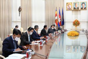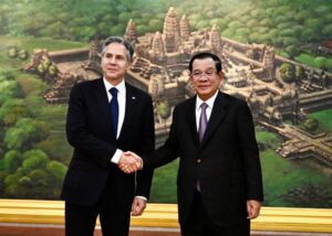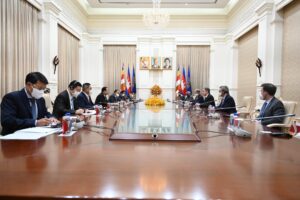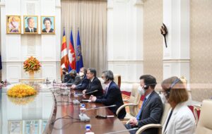 សម្ដេចអគ្គមហាសេនាបតីតេជោ ហ៊ុន សែន នាយករដ្ឋមន្ត្រី នៃព្រះរាជាណាចក្រកម្ពុជា អនុញ្ញាតឱ្យឯកឧត្តម ឯកឧត្តម អ៊ែនថូនី ប្លីងខិន (Antony Blinken) រដ្ឋមន្ត្រីការបរទេសអាមេរិកចូលជួបសម្ដែងការគួរសម និងពិភាក្សាការងារ នៅវិមានសន្តិភាព នារសៀលថ្ងៃទី០៤ ខែសីហា ឆ្នាំ២០២២ខណៈដែលឯកឧត្តមអញ្ជើញមកចូលរួមកិច្ចប្រជុំរដ្ឋមន្ត្រីការបរទេសអាស៊ានលើកទី៥៥ និងកិច្ចប្រជុំពាក់ព័ន្ធ នៅព្រះរាជាណាចក្រកម្ពុជា។