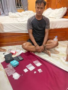 ១.ឈ្មោះ ផេន ប៊ុនថេង ភេទប្រុស អាយុ ៣៤ឆ្នាំ ជាតិខ្មែរ មុខរបរ មិនពិតប្រាកដ មានទីលំនៅភូមិអន្លង់សំឡី ឃុំខ្ពបតាងួន ស្រុកស្ទឹងត្រង់ ខេត្តកំពង់ចាម ជាមុខសញ្ញាមានម្សៅក្រាមពណ៍សសង្ស័យជាថ្នាំញៀនចំនួន ០២កញ្ចប់ ។