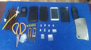 ករណីខាងលើសមត្ថកិច្ចយើងដកហូតវត្ថុតាងរួមមាន÷ ម្សៅក្រាមពណ៍សសង្ស័យជាថ្នាំញៀនចំនួន ០៩កញ្ចប់, ទូរស័ព្ទដៃចំនួន ០៨គ្រឿងរឿង និងថង់វេចខ្ចប់ថ្នាំញៀមួយចំនួន ។