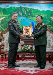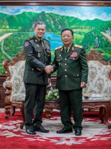 ឧត្តមសេនីយ៍ឯក ហ៊ុន ម៉ាណែត ជួបពិភាក្សាការងារជាមួយរដ្ឋមន្ត្រីក្រសួងការពារប្រទេសឡាវ នៅរដ្ឋធានីវៀងចន្ទន៍!