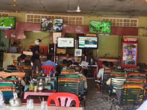 ពិសេសនៅតាមបណ្ដាហាងកាហ្វេនីមួយៗក្នុងក្រុងសៀមរាប គឺក្រុមអ្នកញៀនល្បែង”អនឡាញ”ភ្នាល់ចាក់លុយធំៗ ដោយហ៊ោកញ្ច្រៀវអ៊ូអរ យ៉ាងគគ្រឹកគគ្រេងបំផុតហាក់បីដូចជាប្រទេសគ្មានច្បាប់ទៅទៅហើយ ។
