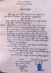 នេះជាសំណេរទាំងស្រុង«ខ្ញុំបាទឈ្មោះ អ៊ុយ សឿន ភេទប្រុសអាយុ64ឆ្នាំ រស់នៅភូមិទន្លេបិទ ឃុំទន្លេបិទ ស្រុកត្បូងឃ្មុំ ខេត្តត្បូងឃ្មុំ។