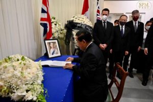 សម្តេចតេជោ ហ៊ុន សែន អញ្ជើញដឹកនាំគណៈប្រតិភូជាន់ខ្ពស់រាជរដ្ឋាភិបាល គោរពព្រះវិញ្ញាណក្ខន្ធ ព្រះមហាក្សត្រីយ៍ អេលីហ្សាប៊ែតទី២ នៅស្ថានទូតអង់គ្លេស