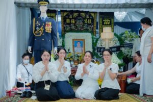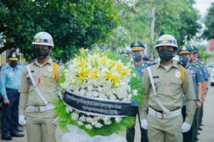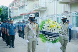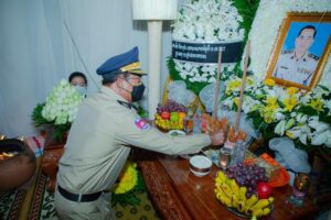 ខេត្តត្បូងឃ្មុំ ៖ ថ្ងៃសៅរ៍ ៧កើត ខែភទ្របទ ឆ្នាំខាល ចត្វាស័ក ព.ស.២៥៦៦ ត្រូវនឹងថ្ងៃទី១៧ខែកញ្ញា ឆ្នាំ២០២២ លោកឧត្តមសេនីយ៍ត្រី ម៉ុន មាគ៌ា ស្នងការនគរបាលខេត្តត្បូងឃ្មុំ ដឹកនាំលោកលោកស្រី ស្នងការរង និងសហការី អមដំណើរ លោកឧត្តមសេនីយ៍ឯក កៅ កេសរៈ អនុប្រធាននាយកដ្ឋានបុគ្គលិក តំណាងដ៏ខ្ពង់ខ្ពស់ លោកនាយឧត្តមសេនីយ៍ អគ្គស្នងការរង និងជាប្រធាននាយដ្ឋានបុគ្គលិក អញ្ជើញចូលរួមពិធីគោរពវិញ្ញាណក្ខន្ធ និងបំពាក់ឋានន្តរសក្តិ ថ្នាក់ ឧត្តមសេនីយ៍ទោ ជាកិច្ចបច្ឆាមរណៈ ជូនសពលោកឧត្តមសេនីយ៍ត្រី ឈឹម គឹមហុង ស្នងការរង ទទួលផែនការងារនគរបាលសណ្ដាប់ធ្នាប់ នៃស្នងការដ្ឋាននគរបាល ខេត្តត្បូងឃ្មុំ ដែលបានទទួលមរណភាពកាលពីថ្ងៃទី១៥ ខែកញ្ញា ឆ្នាំ២០២២ វេលាម៉ោង ០២ និង ០០ នាទី រំលងអាធ្រាត ដោយជំងឺគាំងបេះដូង ព្រមទាំងបាននាំយកថវិកា និងបច្ច័យមានដូចខាងក្រោមៈ