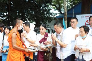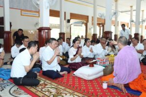 ខេត្តកំពង់ចាម ៖ នៅព្រឹកថ្ងៃសៅរ៍ ទី២៤ ខែកញ្ញា ឆ្នាំ២០២២នេះ លោកឧត្តមសេនីយ៍ទោ ឯមកុសល ស្នងការនគរបាលខេត្តកំពង់ចាម និងក្រុមគ្រួសារ ព្រមទាំងសហការី បាននាំយកបច្ច័យដ៏ថ្លៃថ្លារបស់ លោកនាយឧត្តមសេនីយ៍ សន្តិបណ្ឌិត នេត សាវឿន អគ្គស្នងការនគរបាលជាតិ និងលោកជំទាវ ទៅចូលរួមដាក់បិណ្ឌវេនទី១៤ នៅវត្ដភ្នំជ័យគីរី ហៅវត្តភ្នំហាន់ជ័យ ស្ថិតនៅស្រុកកំពង់សៀម ខេត្តកំពង់ចាម ។
