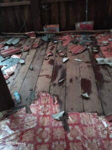 -ផ្ទះទី១ ឈ្មោះ ហ៊ុំម សារិទ្ធិ អាយុ២៣ ឆ្នាំ ប្រពន្ធឈ្មោះ ចេក ម៉ៅ អាយុ ២៤ឆ្នាំ ក្នុងបន្ទុកមានចំនួន ០២នាក់ ស្រី ០១នាក់ ខូចខាតគោយន្ត ០១គ្រឿង និងរលំផ្ទះ ។