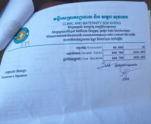 ដោយត្រូវគ្រូពេទ្យនៅទីនោះ ឱ្យសម្រាកព្យាបាលរយៈពេល៥ថ្ងៃអស់ជាង៤លានរៀល លុះក្រុមគ្រួសារទូទាត់លុយឱ្យពេទ្យរួច ដឹកជនរងគ្រោះដល់ផ្ទះ ដាច់ខ្យល់ស្លាប់តែម្ដង។