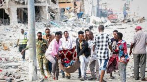 យោងតាមមន្ត្រីប៉ូលីសបាននិយាយថា ក្រុមអ្នកប្រយុទ្ធមកពីក្រុមប្រដាប់អាវុធ al-Shabab កាលពីថ្ងៃអាទិត្យ បានបើកវាយប្រហារក្នុងសណ្ឋាគារមួយ ដោយប្រើមន្ត្រីរដ្ឋាភិបាលម្នាក់ជាចំណាត់ខ្មាំងឲ្យពាក់អាវកាក់អត្តឃាតបង្កៃគ្រាប់បែក ក្នុងរដ្ឋធានី Mogadishu ប្រទេសសូម៉ាលី ។