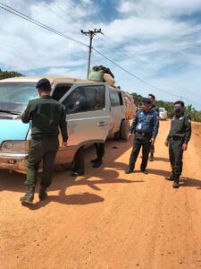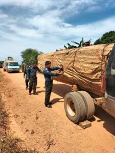 នៅវេលាម៉ោង ៨ និង ៣០នាទី ថ្ងៃទី០១ ខែវិច្ឆិកា ឆ្នាំ២០២២ កម្លាំងអាវុធហត្ថខេត្តក្រចេះ និងកម្លាំងស្នាក់ការសន្តិសុខ៧០៦ ព្រមទាំងកម្លាំមូលដ្ឋាន កងរាជអាវុធហត្ថស្រុកព្រែកប្រសព្វ ដឹកនាំដោយលោក អនុសេនីយ៍ឯក ម៉ាង ដឿន មេបញ្ជាការរងស្រុក សហការណ៌ជាមួយ កម្លាំងមូដ្ឋានកងរាជអាវុធហត្ថស្រុកស្ទឹងត្រង់ ដឹកនាំដោយលោក វ ទោ សែម ឃាង បានធ្វើការចាប់រថយន្តដឹកឈើអារចំរុះចំនួន ០២គ្រឿង នៅចំណុចភូមិឈើទើ ឃុំខ្ពបតាងួន ស្រុកស្ទឹងត្រង់ ខេត្តកំពង់ចាម ដោយបានឃាត់រថយន្តសាំងយ៉ុងពណ៌ទឹកប្រាក់គ្មានស្លាកលេខដឹកឈើអារលេខ ២ ចំរុះ និងរថយន្តសាំងយ៉ុងពណ៌ស្លែ គ្មានស្លាកលេខដឹកឈើអារលេខ ២ ចំរុះម្ចាស់រថយន្តរត់គេចខ្លួនបាត់អស់។