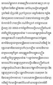 អំពីអង្គហេតុ នៅថ្ងៃទី១៨ ខែធ្នូ ឆ្នាំ២០២២ នៅវេលាម៉ោង១២ និង២២នាទី នៅចំណុចគោលដៅឈរជេីងរបស់កម្លាំងនៃការិយាល័យនគរបាលចរាចរណ៍ផ្លូវគោក សហការជាមួយកម្លាំងជំនាញអធិការដ្ឋាននគរបាលចរាចរណ៍ស្រុកព្រៃឈរ ចុះអនុវត្តការរឹតបន្ដឹងច្បាប់ចរាចរណ៍ផ្លូវគោក តាមអនុក្រឹតលេខ៣៩ អនក្រ.បក ចុះថ្ងៃទី១៧ ខែមីនា ឆ្នាំ២០២០ នៅចំណុចស្ថិតនៅក្នុងភូមិត្រពាំងធំឃុំស្រង៉ែ ស្រុកព្រៃឈរ ខេត្តកំពង់ចាម កម្លាំងជំនាញនគរបាលចរាចរណ៍ បានឃាត់រថយន្ត០១គ្រឿង ម៉ាកកាម៉ារី ហាយព្រីត ពណ៌ទឹកប្រាក់ ពាក់ផ្លាកលេខភ្នំពេញ 2Z-3553 ពាក់ព័ន្ធបើកបរល្មេីសល្បឿនកំណត់ ៨៦គីឡូម៉ែត្រក្នុងមួយម៉ោង ។ ពេលនោះអ្នករួមដំណើរក្នុងរថយន្តខាងលើ បានចុះពីលេីរថយន្ដមកដល់កន្លែងតុផាកពិន័យជួបជាមួយមន្រ្ដីនគរបាលចរាចរណ៍យើងខ្ញុំ តែបុគ្គលនោះមិនបានទទួលកំហុសឡេីយ ដោយនិយាយជាមួយសមត្ថកិច្ចថា រថយន្ដខ្លួនបេីកបរក្នុងល្បឿន ៣០គីឡូម៉ែត្រក្នុងមួយម៉ោង ។ បន្ទាប់មកមន្រ្ដីនគរបាលចរាចរណ៍ក៏បានបង្ហាញរូបភាពល្មើសនឹងល្បឿនកំណត់ទៅអ្នករួមដំណេីរនោះ និងបានហៅអ្នកបេីកបរមកជួប និងបង្ហាញរូបភាពល្មេីស (អ្នកបេីកបរនោះ បានចុះមក តែមិនបានប្រកែកតវាទេ) ។ ពេលនោះមន្រ្តីនគរបាលជំនាញយើងខ្ញុំ ក៏បានធ្វើការអប់រំណែនាំដោយផ្ទាល់មាត់អំពីច្បាប់ស្ដីពីចរាចរណ៍ផ្លូវគោកទៅកាន់អ្នកបេីកបរ រួចហើយក៏អនុញ្ញាតឲ្យបន្តដំណើរទៅមុខទៀត ដោយមិនមានការផាកពិន័យឡេីយ ។