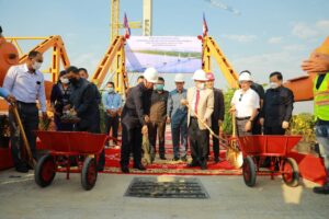 ពិធីតភ្ជាប់តួស្ពានបេតុងខ្សែកាបឆ្លងទន្លេសាបនេះ ធ្វើឡើងក្រោមអធិបតីភាព ឯកឧត្តម ឃួង ស្រេង អភិបាលរាជធានីភ្នំពេញ និងអ្នកឧកញ៉ា ពុង ឃាវសែ ព្រមទាំងមានការចូលរួមពីមន្ត្រីជំនាញចំណុះឲ្យរដ្ឋបាលរាជធានីភ្នំពេញ ជាច្រើនរូបទៀត។