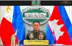 (ភ្នំពេញ)៖ ឯកឧត្តម ឧត្តមសេនីយ៍ឯក ហ៊ុន ម៉ាណែត អគ្គមេបញ្ជាការរង នៃកងយោធពលខេមរភូមិន្ទ មេបញ្ជាការកងទ័ពជើងគោកនៃកងយោធពលខេមរភូមិន្ទ នៅថ្ងៃទី១៩ ខែមករា ឆ្នាំ២០២៣នេះ បានជួបប្រជុំតាមប្រព័ន្ធ VTC ជាមួយឯកឧត្តម ឧត្តមសេនីយ៍ឯក ROMEO S BRAWNER JUNIOR មេបញ្ជាការកងទ័ពជើងគោក នៃសាធារណរដ្ឋហ្វីលីពីន។